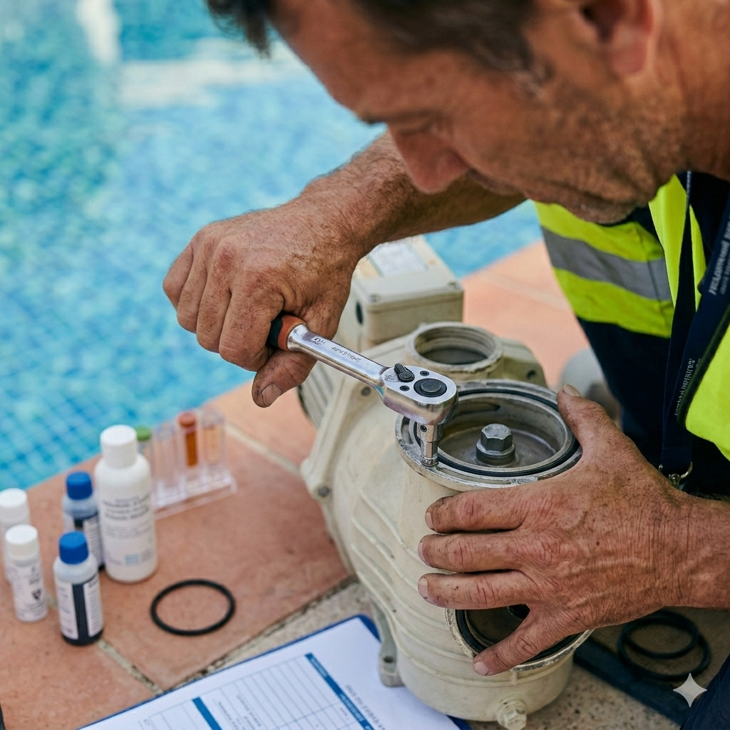 Réparation de pannes sur pompe, filtre, traitement automatique, remplissage automatique