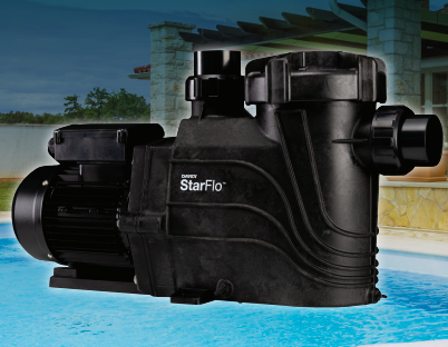 La pompe StarFlo est une pompe de filtration conçue pour les piscines résidentielles, disponible en versions monophasée et triphasée, offrant des performances hydrauliques adaptées à différents volumes de bassins.